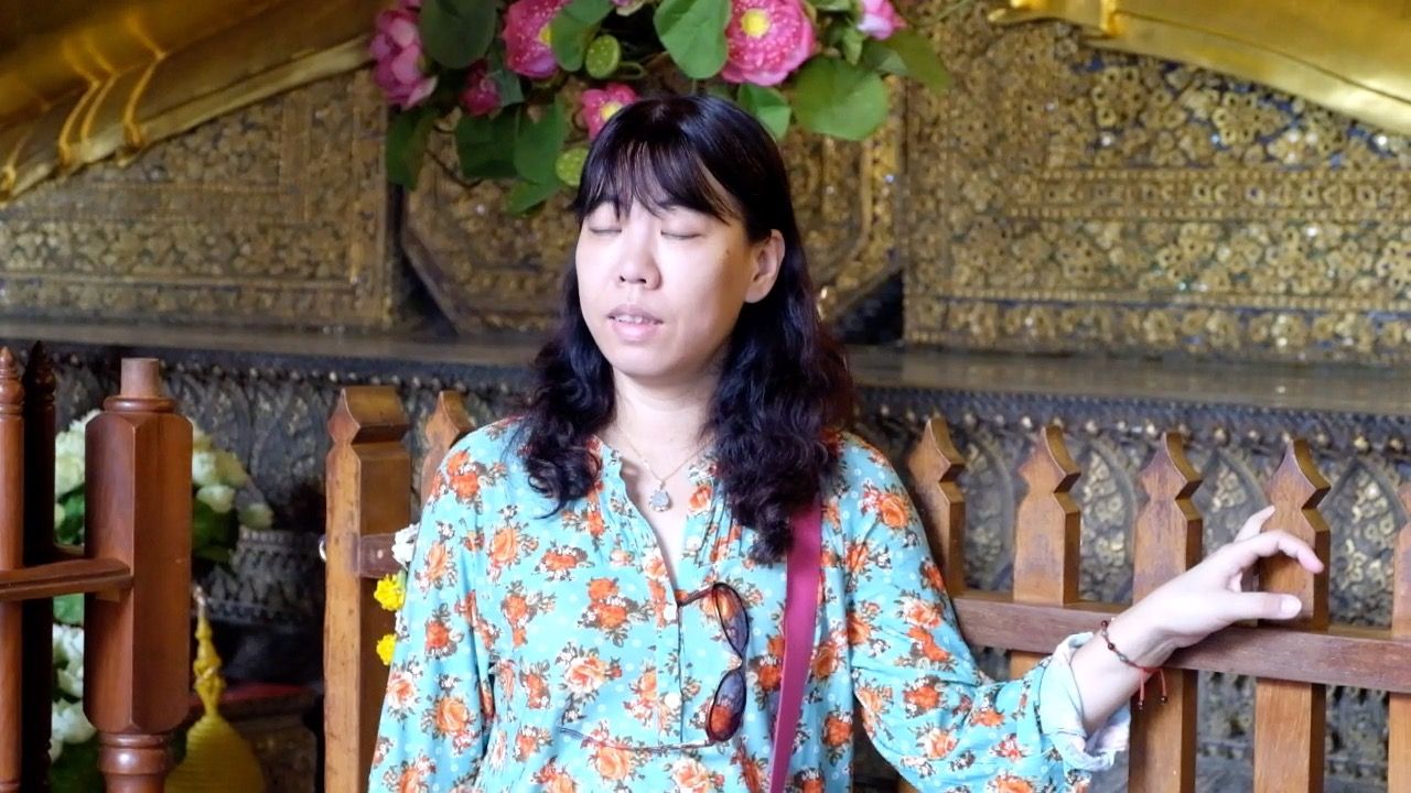 Die Arbeit besteht aus 40 Fotos (Video Stills) und einem Video. Während im Video Sequenzen von Selfies und einander gegenseitig fotografierenden Touristen im Wat Pho Tempel in Bangkok zu sehen sind, zeigen die Fotos eine Person mit geschlossenen Augen, scheinbar in einem Zustand der inneren Einkehr.