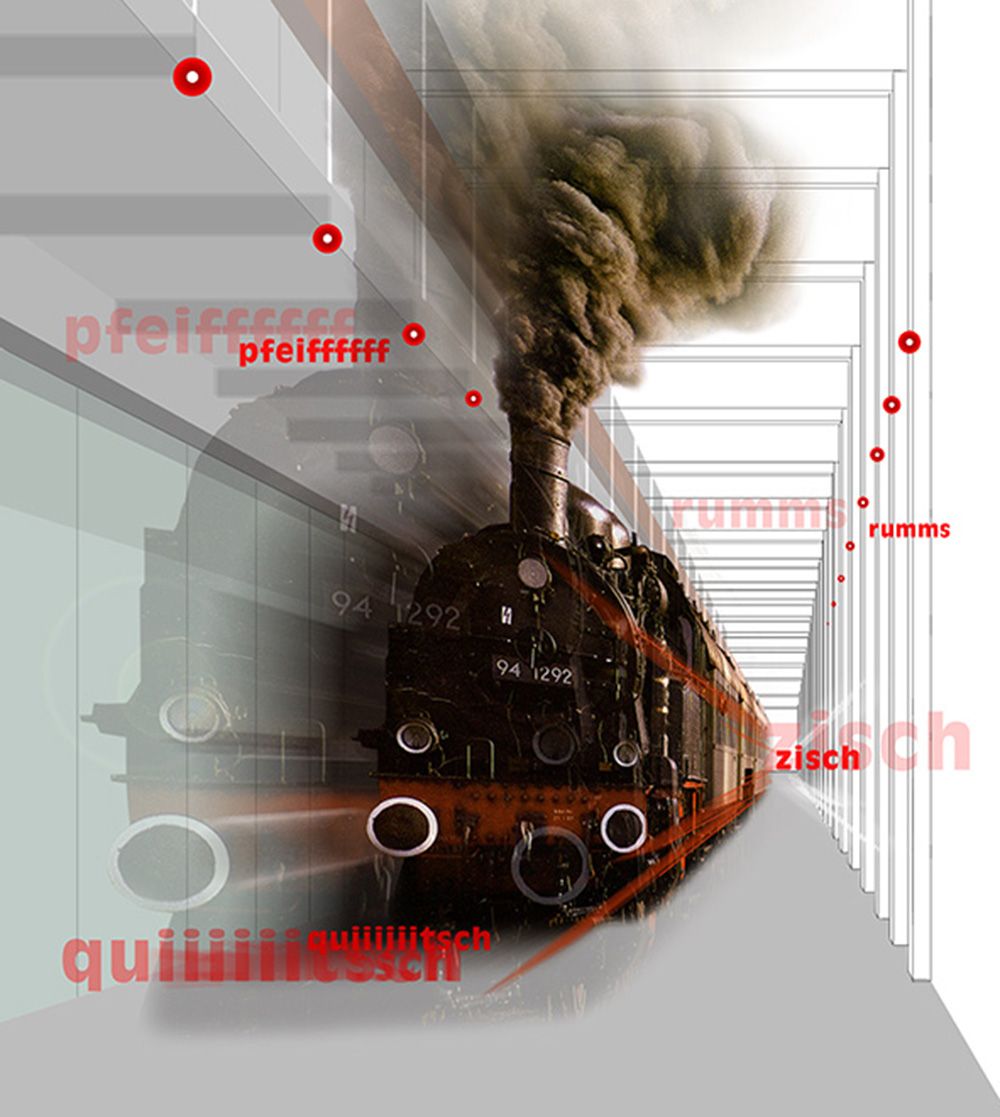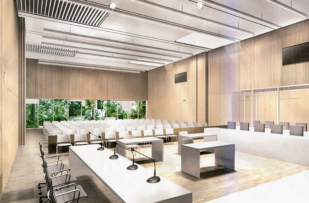 Mein Vorschlag stellte eine Analogie zum Dschungel und zur Praxis der Tatortfotografie her. Auf der hinter der Sicherheitsglasscheibe gelegenen Rückwand des Lichthofs sollten farbige Kacheln Bilder aus dem Dschungel zeigen und damit die menschliche Anwesenheit dort dokumentieren.