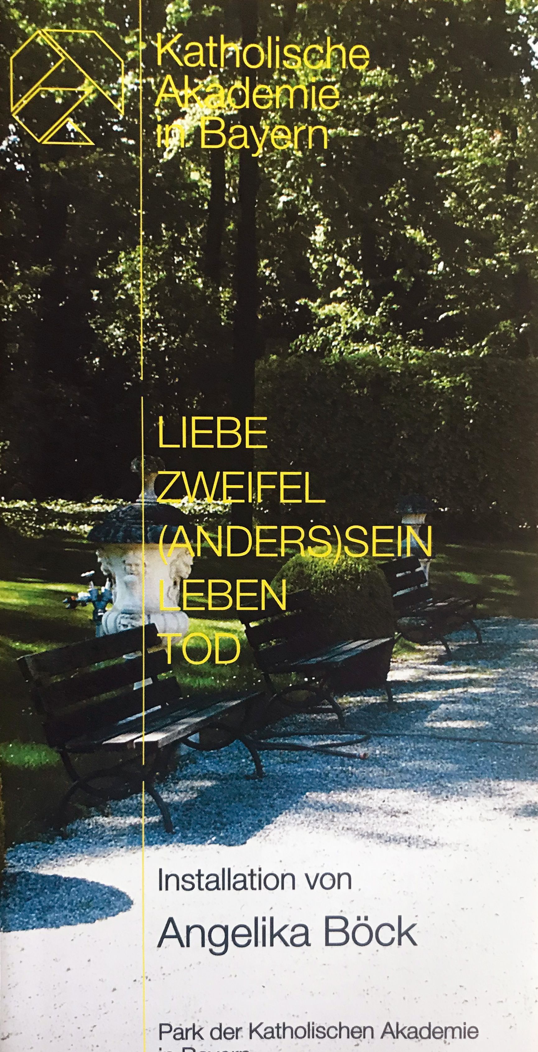 For this five-part work, I pushed park benches together to form a large semicircle, mounted loudspeakers under the seats and gave them with park bench signs, each of which marks a central theme of the Christian faith: Love-Doubt - Being Different - Life - Death. Then I asked 15 people to talk to me about the images, feelings, events and insights that they associate with the terms. Then I assembled these monologues into continuous dialogues. While visitors only hear a diffuse murmuring when entering the park, the apparent conversations can be followed as soon as one takes a seat on one of the benches.
