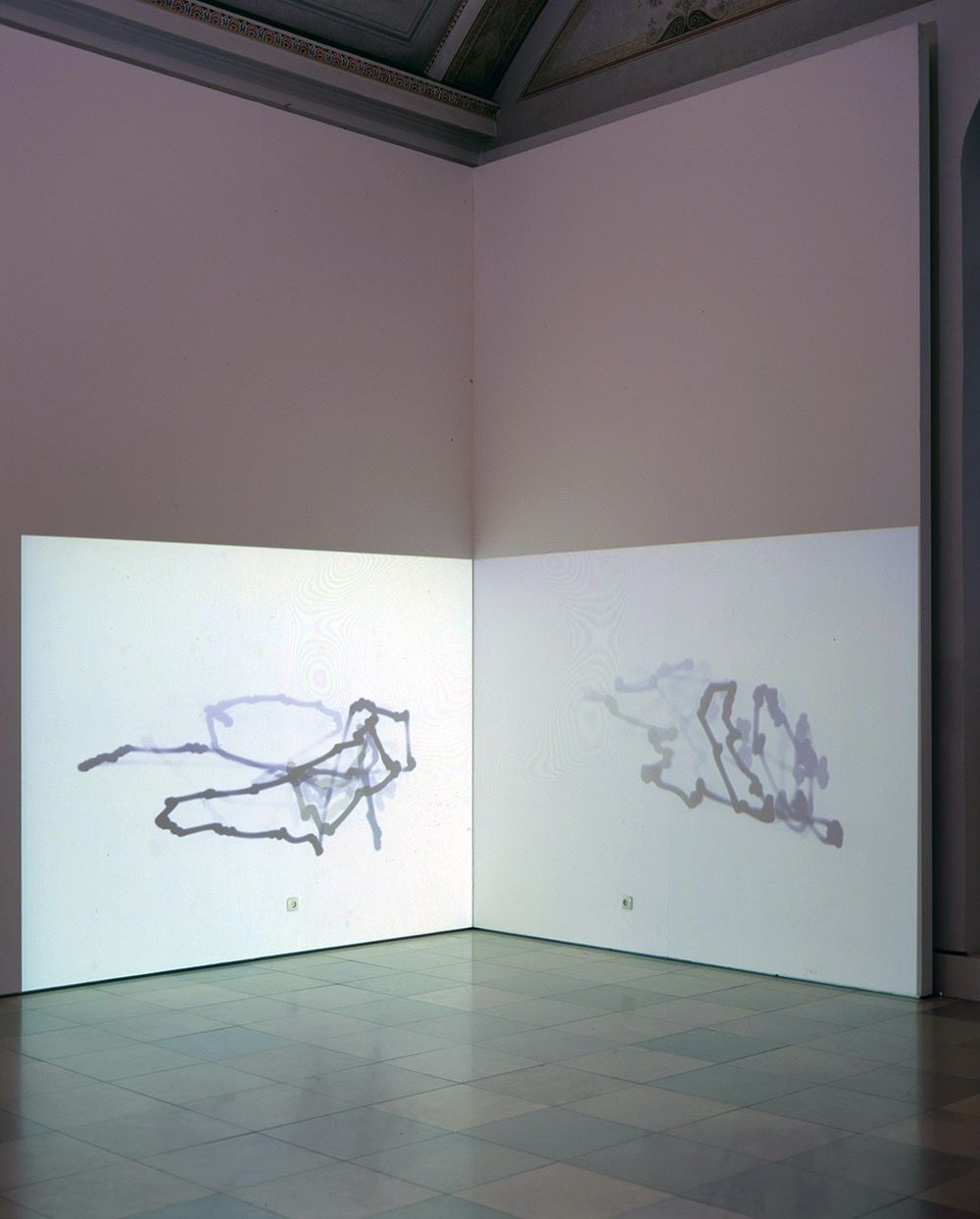 The 2-channel work reflects the meditative view on moving water. This video-sound installation follows an idea similar to , but all that remains are the traces of the view of the water from a jetty. The visual stimulus here is replaced by a soundtrack with water sounds.