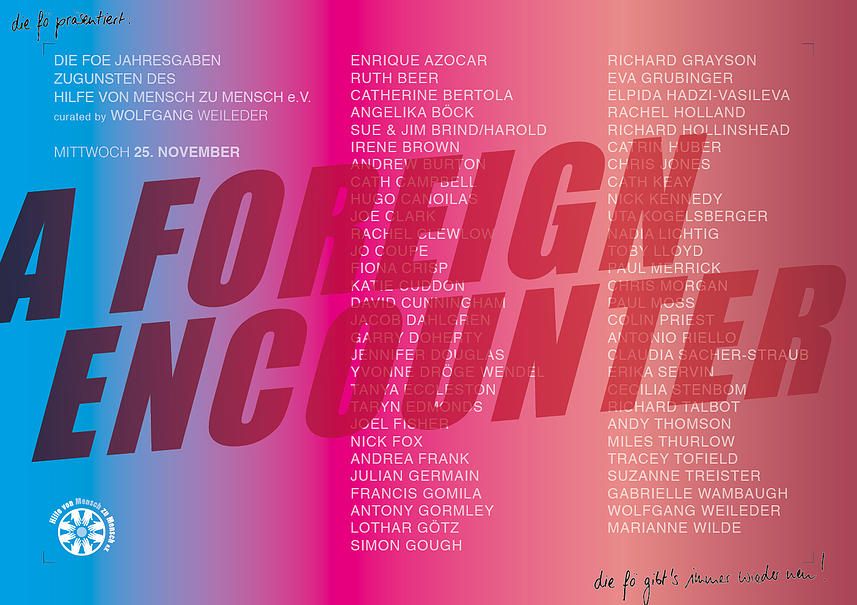 The exhibition curated by Wolfgang Weileder for the Galerie im Atelierhaus FOE presented small-format works and project documentations by Enrique Azicar, Ruth Beer, Catherine Bertola, Sue & Jim Brind/Harold, Angelika Böck, Iren Brown, Andrew Burton, Cath Campbell, Hugo Canoila, David Cunningham, Joe Clark, Rachel Clewlaw, Jo Coupe, Fiona Crisp, Katie Cuddon, Jacob Dahlgren, Garry Doherty, Jennifer Douglas, Yvonne Dröge Wendel, Tanya Eccleston, Taryn Edmonds, Joel Fisher, Nick Fox, Andrea Frank, Julian Germain, Francis Gomila,Anthony Gormley, Lothar Götz, Simon Gough, Richard Grayson, Eva Grubinger, Elpida Hadzi-Vasileva, Rachel Holland, Richard Hollinshead, Cathrin Huber, Chris Jones, Cathy Keay, Nick Kennedy, Uta Kogelsberger, Nadia Lichtig, Toby LLoyd, Paul Merrick, Chris Morgan, Paul Moss, Colin Priest, Antonio Riello, Claudia Sacher-Straub, Erika Servin, Cecilia Stenbom, Richard Talbot, Andy Thomson, Miles Thurlow, Tracey Tofield, Suzy Treister, Gabrielle Wambaugh, Wolfgang Weileder and Marianne Wilde.
