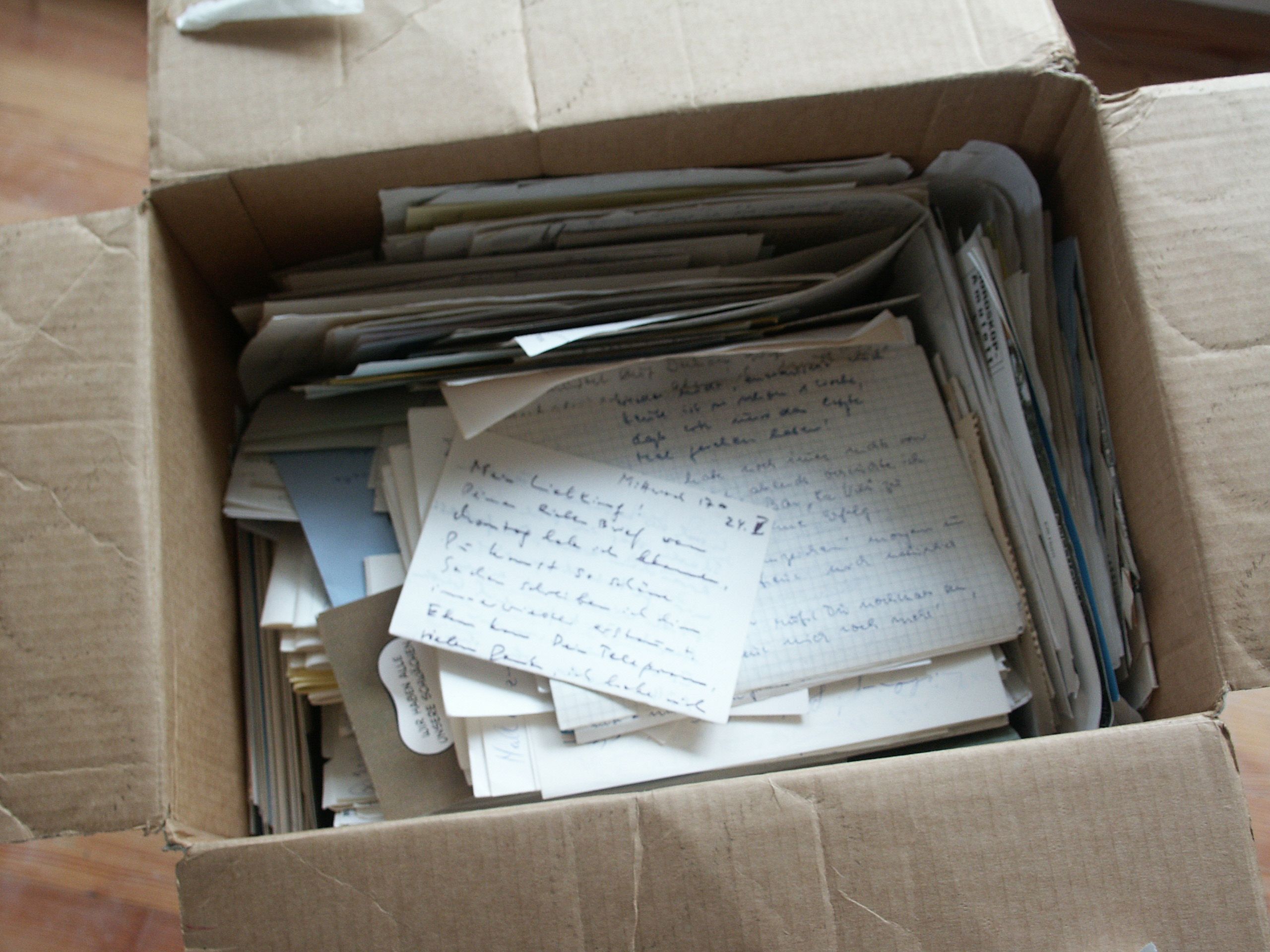 The exhibition at the Saarländischen Künstlerhaus juxtaposed the installation , which presents three heterosexual love stories in ever new and different ways, with the installation . The latter was created on the basis of an advertisement in the Münchner Abendzeitung which offered a box of love letters for sale.