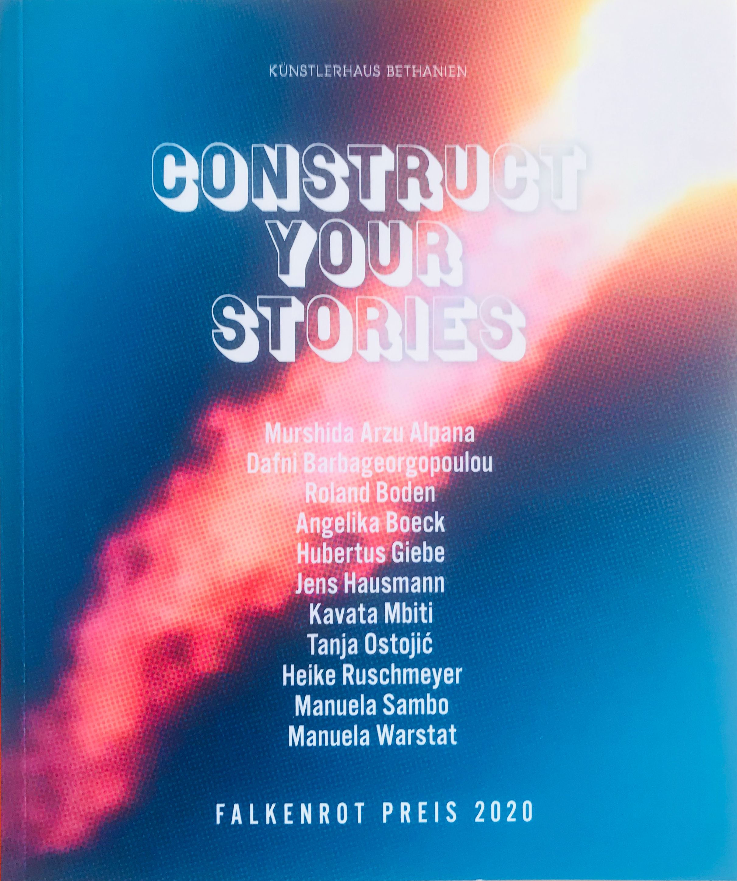 The catalogue was published on the occasion of the exhibition Construct Your Stories, which is connected with the award of the Falkenroth Prize 2020. It shows works by Murshida Arzu Alpana, Dafni Barbageorgopoulou, Roland Boden, Angelika Boeck, Hubertus Giebe, Jens Hausmann, Kavata Mbiti, Tanja Ostojić, Heike Ruschmeyer, Manuela Sambo and Manuela Warstat.