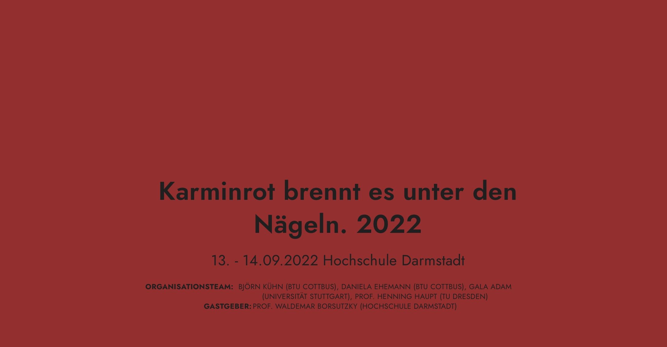Lecture "On the better understanding of one's own art practice-based research through a PhD" at the GKG symposium "Karminrot brennt es unter den Nägeln", PANEL 5 Selbstbilder der Lehrenden, Hochschule Darmstadt.